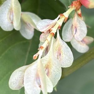 🌱野に咲く花と果実🌱 雌雄異株 ①②③雌株の雌花の実 外周の薄い3個のガクが翼状に 広がり〰︎果実を包む(翼果) ④⑤雄株の雄花 虎杖(いたどり) タデ科