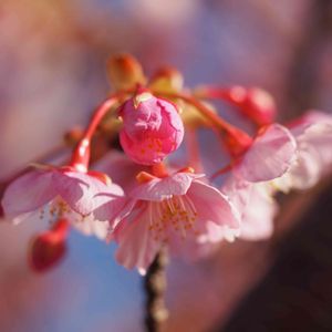 他の桜に先駆けて咲く河津桜 全身をかけめぐる赤い色素が 春への憧れを表しているよう