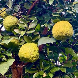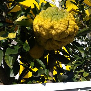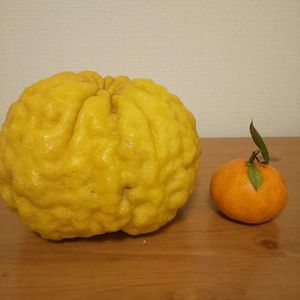 オニユズ👹、シシユズ🦁とも言いますが、わが家で初! お花は沢山咲いて、実も沢山付きましたが、、今はひとつだけです🍊 大きくなって20センチくらいに、、 もうそろそろ✂️しないといけないのでしょうか! 縁起物なので、お正月に飾りたかったのですが、、 どうなりますか🌿 お味はというと、、これがいわゆる 柚子の味とは大違い! グレープフルーツのような良いお味 なのです👍 食いしん坊としましては楽しみで🎵😆😅(笑)