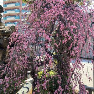 こんにちは😊 今日も暖かいです☀️🌷 実家の隣りの従兄弟宅の庭に枝垂れ梅🌸 可愛いらしく咲いてます🥰