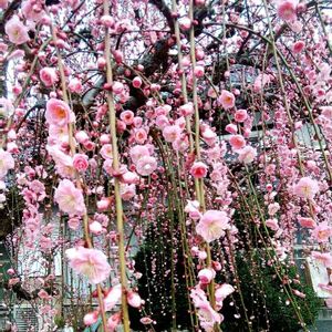 実家(鹿児島)の枝垂れ梅💠 老木でボロボロになりながらも 新しい枝が伸びて かわいい花を咲かせてくれてます💞