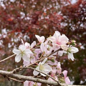 四季桜① 初めて四季桜🌸を見に行って来ました。 春の桜🌸と比べると見劣りしてしまうけど、紅葉🍁と桜🌸が一緒に見られたのは、感動でした😊