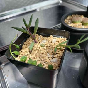 先日、gsで仲良くして頂いてる方におねだりして送って頂いた ドルフィンネックレス🐬 「あんまり状態が良くないよ」って聞いてたけど、全然綺麗でした😊 数日お水に泳がせて根出して植え付け。 この新芽の部分を見る限り、うまく成長してくれるんじゃないか♪と期待しております😊 他にもたくさん多肉ちゃんを送って頂いて、感謝感激雨あられ♪ 大切に育てますね💕