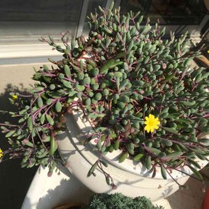 ベランダのミニ多肉ちゃんたちが倒れていることが2回ほど….°(ಗдಗ。)°. ハトか⁉︎Σ(-᷅_-᷄๑) ネットや囲いをする技術は無いので、「とりあえず大きいプラかご被せよう‼️」とDAISOへ。 そこで暴れまわっているネックレスちゃんを発見😃 つぼみもあるよね。 もうすぐ咲くよね。 黄色の小さいプランターから飛び出し過ぎだよね。 連れて帰っちゃうよね〜(*⁰▿⁰*) 2個でこのボリューム🌿🌿 3coinsの大きな鉢に引けを取りません😆 ほんで、茎は紫だけどグリネ?ルビネ? この子はどっちだ?