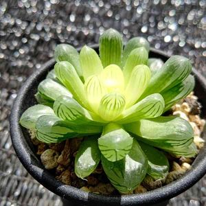 ●ススキノキ科 ツルボラン亜科 ●ハオルチア属 ●ゴースト😻😻 黄色い部分の葉が段々グリーン系に変わってきてしまう…😅😅 ゴーストはこんなもんか?🤣😅😅 いや、もっと上手く育てられるはず…😂😂🤣 何がいけないのかな… 屋外だから?😅わからない。