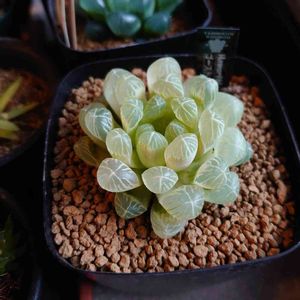 こんばんは。 ハオ狩りに行ってきました!ホームセンターを中心に5店舗回りましたが、1株も購入せず。 こちらは、優良株のハオルチア「ゴースト」です。お店のものです。3,000円+税。 (*^^*)