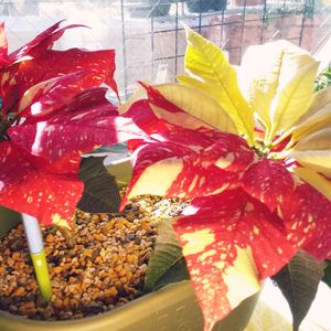 ポインセチアって、こんなに種類あったんだ〜って思ってたら、いつの間にか連れてきちゃった😁 斑入りはやっぱりカワユイね〜😍 でも本当はこの時期の植物じゃないらしく、寒さに弱いので慎重に育てなきゃ😎