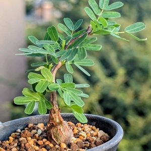 新しい仲間が増えました (置き場所も無いのに…😰) ポコポコ節くれた幹と堅い表皮そして明るい羽状の緑葉が綺麗です そして就眠運動、フィランサスの様に暗くなると葉が閉じる 朝と夕、眺めるのが とても楽しいんです☺️♫ 成長は遅いが寿命が長いと言う なが〜く楽しめる一鉢☝️ 暑いのになぜか植欲が出てきてしまった 😓どうする私‼️