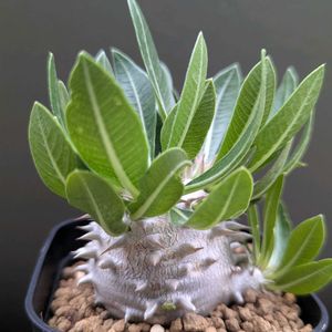今年の6月にうちに来たチビ苗です ドキドキの休眠をあけ、 あっと言う間に葉が出始め 株が見えないほどの大きな葉に成長 こんなチビ苗のどこにその力があるのか不思議です 葉も厚く葉脈がクッキリ、 裏は綺麗な紫色に………🤗 そんな変化の中、株は全くの成長無しのご様子、ちょっとでも良いから動いて〜🙏 自生地は東ケープ州の南部、年間を通して適度な降雨がある為、成長期は水を好むと記されていました。 なに‼️「水を好む」😳💓ムムッ 水やり好きな私としてはちょっと嬉しい。 やり過ぎ注意で見守って行きたいと思います