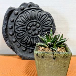 🏷️毎月7日はアガベの日 始めて参加させていただきます🖐️ 「笹の雪」好きなのでやっぱり姫も 並べちゃいます 綺麗なロゼット型とペンキの白さが 目にしみる〜 やはり上から見た姿が素敵ですねぇ〜