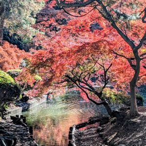 新宿御苑へ散歩 少し遅くなりましたが、まだ苑内は所々🍁紅葉を観ることが出来ました スズカケの立派な木に 太陽の陽がさしがサンサンとさしていました。 ゴツゴツした立派な🌳木です プラタナスの並木道は綺麗な落ち葉の絨毯 そこでちょっとベンチに座り日向ぼっこ 気持ち良い暖かさです😌 大好きなラクウショウの気根もしっかり観察🔍️… 伸びて数もふえていました。良し良し 池にスマホ持った人だかり なになに……… 「アオサギ」だと思います。 全く動かず、いきなりこのポーズ 回りがざわめきました。オ―😳 これで今年の🍁紅葉見納めです