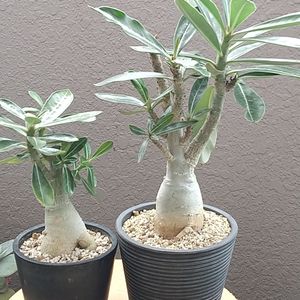 アデニウム兄弟 葉が落ちる前に フサフサぁ~📸 来年は剪定した方が良いのかなぁ~ 悩む(-_-;)。。。。 H 12cm H18cm