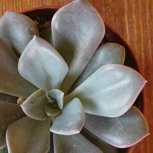 鉢を持ち上げて見たら ((((;゜Д゜))) 葉の下に子株が2つ しかも押されて潰れてる🙊(左上) 直径12cm、我家で一番大きい多肉植物 ピンクプリティーです 土にぴったり生えているので子株を取る事ができません どうしたら良いか教えて下さい。