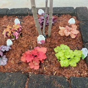 PW ヒューケラ ドルチェ 先日購入していたヒューケラ ドルチェを植えました ハナミズキの足元を囲む様に 🌱🌱🌱 ハナミズキの花が咲く頃に 足元のヒューケラが盛り盛りに育ってくれてたらいいな