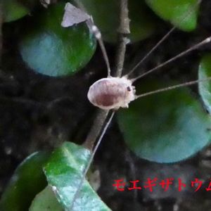 マメヅタにクモみたいな生物を発見! 調べたら、モエギザトウムシ と言う名前の生物でした。 ザトウムシ? 座頭市が頭に浮かんだ、、、