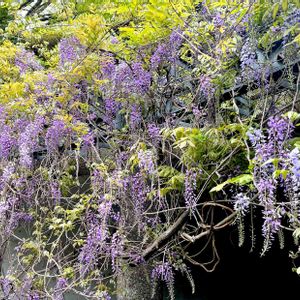 お散歩の時、公園に咲いていた藤です。 横幅いっぱいまで咲いて、隣の木にまでつたっていました!