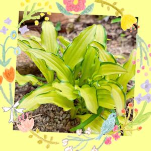 昨年、ご近所の方からいただいたギボウシ。ポットのまま置いていたら葉っぱなくなって諦めていたけど💦 地植えにしてたら出てきました〜😆 黄緑色に緑のライン可愛いです💚💚💚