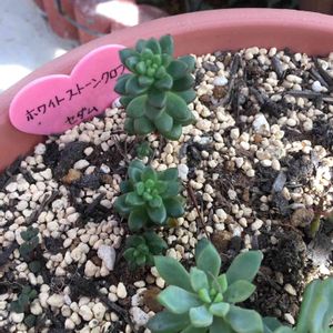 ホームセンターで虹の玉の名札で売ってあったから信じて1年育ててきたのに… これホワイトストーンクロップじゃない?😭確かになんか他の人のと違うな〜とは思ってたけど😭😭 私みたいなアホは信じるからやめて〜 まあ、可愛いからいっか🌱☺️