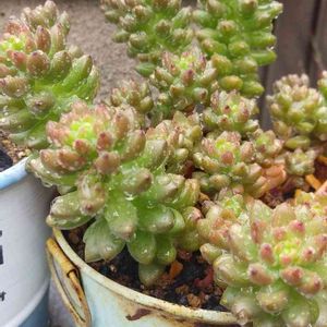 2020/6/14 今日のニャンズ園芸部🐱 セダム属 ホワイトストーンクロプ 雨ざらしで可愛くなってる💕 放置多肉ちゃん😝