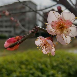 今日のお花 ウメ ①氷川神社に咲く白梅 ②雑司ヶ谷大鳥神社に咲く紅梅 ③④我家の前は霧雨が降り東の空は 少しの間真赤に燃えていました ⑤ふり向けば西のもやった空には薄 っすら虹がかかっていました🌈 不思議な自然界が好きです♪♪ 🏷雲仲間🏷雲仲間🏷今日のお