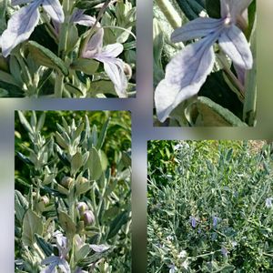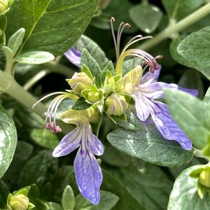 テウクリウム・フルティカンス (難しく覚えられません💦) 別名 ツリージャーマンダー クリオネ (花が流氷の妖精、クリオネに似ている) 薄いブルーの花 シルバーリーフ 長い蕊 とても魅力的な花でした💜🌿🌿💖 🏷️美しく青きドヨウ 🏷️青い花の蕾を写そう!2023 🏷️春色の青い花2023 🏷️青い花マニア に参加させて頂きます シソ科/ニガクサ属 常緑低木 原産地;スペイン 開花時期;2月~7月 花言葉;愛敬、淡白 行きつけの近所のお花屋さん 建物の隅にどーんと置かれた大きな鉢に植えられていました よく通る道路脇なのに何故か今まで存在に気が付かなかった😅