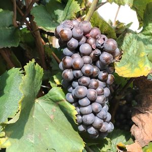 ピノ・グリ🍇 山辺ワイナリーの駐車場の片隅に植えられているワイン用ブドウの一つです 貴腐ワイン用なのか、ミカンや柿を収穫する際に一つ残す「木守り」みたいにブドウも残しているのかは分かりませんが、間近でじっくりとワイン用ブドウを見たのは初めてです👀 デラウェアよりも粒が小さい印象のピノ・グリですが、こう見えて白ワイン用のブドウで、ピノ・ノワールの突然変異種なのだそうです 果皮を見ると(色が薄いけど😅)赤ワインとかロゼワイン用に見えるので驚きです😲