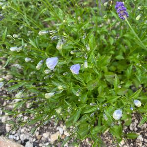 師匠a.k.a隣のみよちゃん、新しい植物を入手したらしい 小さな薔薇みたいな可憐な花が咲いてる 師匠a.k.a隣のみよちゃんにカンパニュラ ブルーワンダーと教えてもらう