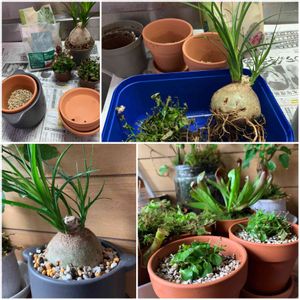 ホームセンターで今日買ってきた子達🪴🌿💠 右から カンパニュラ ブルーワンダー 姫秋麗(グラプトペタルム) ピポエステス カンパニュラは花が終わりかけのせいかかなり値下げされていたので購入。モリモリしていて蕾がまだ沢山あるものを選びました。植え替え&育て方を調べてわかったのですがこの子初心者な私には向いてなさそうだ。でもブルー系のお花大好きなので大切に育てます。 姫秋麗、百均の多肉ちゃんに慣れているせいかホームセンターの多肉ちゃんが高級な子に見えてなかなか手を出せなかったのですがこの子は色も形も可愛いくてポットいっぱいに植えられていてこれは逆にお得なのでは?と思い込んで購入しました。姫秋麗の他にもいろんな品種の多肉ちゃんがあって買おうか迷ったけど泣く泣く諦めました。 ヒポエステスは斑点かわいいおしゃれ&お手頃価格だったので購入。観葉植物としても育てられるらしい。本当はもっとたくさん買いたかった。 カンパニュラとヒポエステスは一緒に寄せ植え、姫秋麗は2株に分けて2鉢に植えた。 植え替えた写真を本当は載せたかったのですが私が不器用すぎて見た目があまりよろしくなくなったので、買ってきてすぐ家の地面に置いて撮った写真にしました。