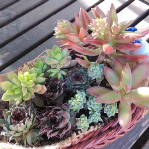 ミニバスケットに 多肉ちゃんを 寄せてみました(๑˃̵ᴗ˂̵)🌵•*¨*•.¸¸☆*・゚