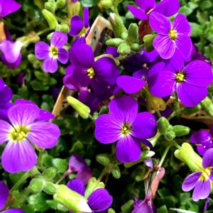 小さい花がたくさん💜 シコンノボタンのような、濃い紫色 とっても可愛らしくて、珍しいので お持ち帰りしました。 早速、寄せ植え作りました💕 💟オーブリエチア💜宿根草