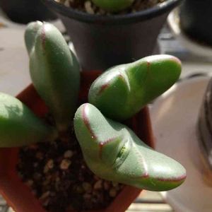これも植え替え 大きさは本来のものより小さくなってしまったけど~去年よりは良い出来です。(*^^*) 矢作砂100% 葉挿しには良いようですが育成には向かないと一年間の観察で判明。 育成はいつものコメリの多肉の土ですることに。