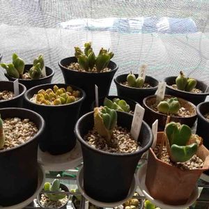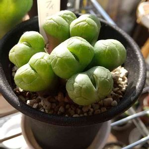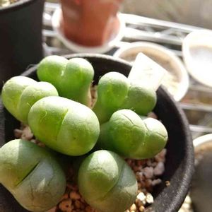 去年、根出しに失敗したコノフィツム…御所車だったかな? 少し早いけどムキムキして葉挿します。