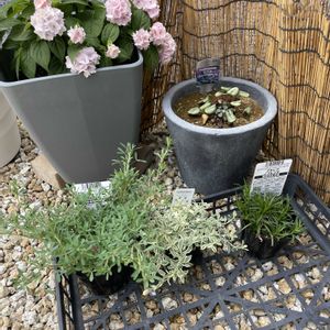 朝から雨… 蒸し暑くて 梅雨みたい 駐車場の花壇スペースのお花が終わりそうだったので模様替え って 鉢植えを並べ替えただけ…😅 斑入りのギボウシとグラス類、 ラベンダーで グリーン多めです グラスの花穂が 出てきてます そろそろ終わりのネモフィラの 代わりに何を植えようかな…