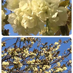 ウコンザクラ(鬱金桜) サクラ科サクラ属 4月9日、10:55のウコンザクラ ウコンザクラはオオシマザクラ系サトザクラの 園芸品種で欝金色と呼ばれる淡黄緑色の 八重咲きの大輪花を咲かせます 🏷️元気な月曜日❗️ 🏷ファンタスティックブルー