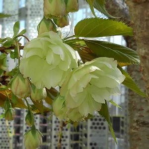 鬱金桜 薄緑からほんのりピンクに染まっていく過程を今年も楽しませてもらいました。