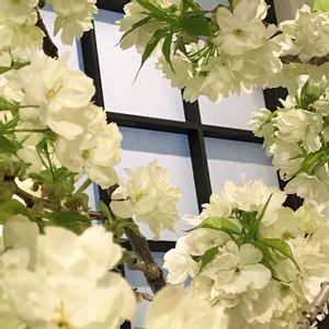 立ち寄ったカフェで* 立派な花瓶に飾ってありました ほんのり優しい緑色の桜です