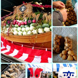 おはようございます🎶 1️⃣昨日は地元の産業まつりに行ってきました! 毎年恒例の野菜で出来た宝船! 牡蠣焼きに、じゃがいもの詰め放題‼️ 主人は700g、私は920g😁 小さいけれど、新じゃが(デジマ)なので、煮っころがしにしたら、美味しそうです😆🎵🎵 牛肉、肉じゃがの試食に牛乳の無料配布もあり、毎年大にぎわいです🥰‼️ 右下の猫のぬいぐるみ「長崎の変 にゃーが」は福山雅治氏がプロデュースし、長崎の魅力を、発信しています😉🎶 2️⃣水仙! 12月初めに咲い水仙の花が更に増えてました❗ 3️⃣ブルーベリーの葉っぱ! いい具合に紅葉してきました‼️ 4️⃣オカワカメの花! まだまだたくさんの花が咲いてますが、霜が降りると冬は葉っぱも枯れてしまいます。 5️⃣サンチュの蕾! チマチマと葉っぱを収穫するつもりでしたが、今年は成長が速く蕾が出来てしまいました😅‼️ こうなると葉っぱは苦くなるそうなので、蕾を収穫して抜こうかと思ってます!