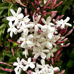 今日のお花 ジャスミン ハゴロモジャスミン(羽衣素馨) モクセイ科 ソケイ属 去年の写真から 赤い蕾と、白い花のコントラストが綺麗です