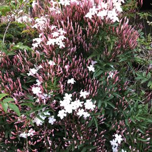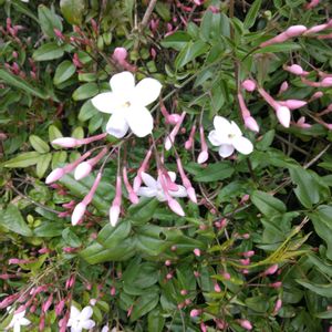 ハゴロモジャスミン 春にピンク色の蕾を沢山つけ、白い花が咲く💕甘い香りがする 去年4月外出先で出会った 我が家の花はまだまだ