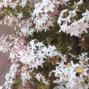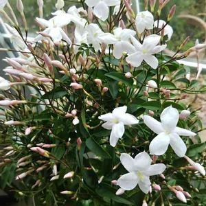 ガーデニング始めた頃に買って育て方もよく知らず、2年くらいお花が咲かなかった羽衣ジャスミンが咲いた~😭 ちょっとしか咲いてないのにベランダがめっちゃ良い香りです💕💕