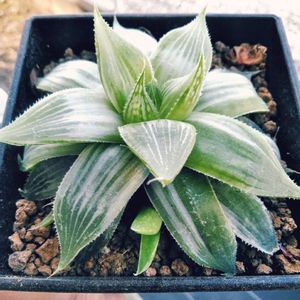 レディ&レツーサアクミネータホワイトゴースト ハオルチア属 子株を植えたら大きくなった🤗❣️ もう少し成長したら植え替えないと狭くなりそうだわ😆