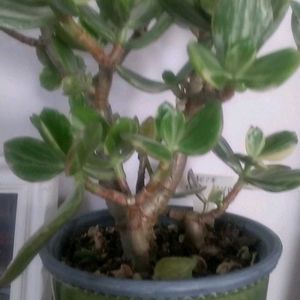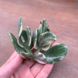 おはようございます😃 斑入りの金の成る木✨ ほんのりフチに紅💄さして😘 白粉はチョッピリ☺️ 将来が楽しみです😍