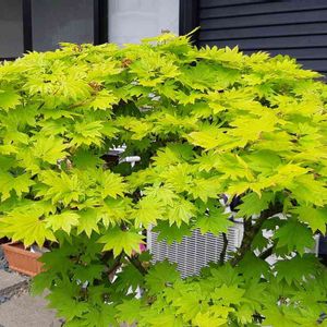 こんにちわ。 庭の植木があちこちで紅葉してますが、今年は台風のせいで葉の痛みがひどくてちょっと残念。 これは(たしか)ハウチワカエデですが、黄緑からオレンジ色に変わるグラデーションがこの時期お気に入りです。