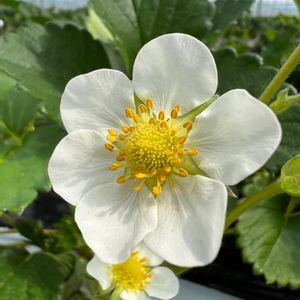 イチゴ💕 職場の仲間で滋賀県へイチゴ狩りに行きました 「章姫」「かおり野」「紅ほっぺ」「よつぼし」の4種類を食べくらべ♪香りや固さが微妙に違う、でもどれも大きくて甘~い😆 真っ赤な実のほうに気を取られてましたが、お花もたくさん咲いていました💕純白の丸い花びらが可愛い♪