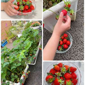 🍓🍓🍓第1回いちご狩り開催🍓🍓🍓 お一人様貸し切り😄 5月5日には1個しか赤くなかったのですが、なんとか開催出来ました。 1番下の孫4才😊 昨日はパパと2人で電動自転車で🫢ディズニーシーに行き、終わりまで居たそうです。 丁度私達が東京で相方の兄夫婦との夕食から帰宅した時に自転車で帰って来ました😅 夜の9時半ごろかな🤔 エネルギーの塊のお孫ちゃんも流石に疲れたようなので、本日午後からいちご狩りを開催しましたよ🍓 中粒が28個取れました😄 あまり分けてくれず、殆ど一人で食べてました🤣🤣🤣