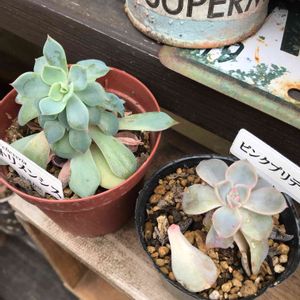 トリネンシス(トリメンシス) 松フラでお迎えした子。初めて聞く子でしたが、枯葉のピンクが可愛い〜💕 先がほんのりピンクに色づくペールグリーンの、やや角のある平べったい葉っぱです。 枯葉ってとった方がいいんでしょうが、きっとわざと残しているんだと思いました。 寄せ植えに使いたいなぁ。