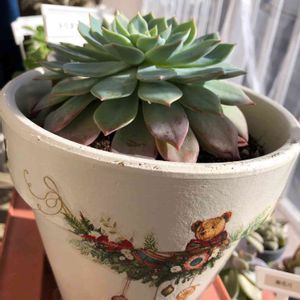 デコパージュのリメ鉢を作りました♪ 前に同じ柄の鉢を メルカリで購入したことがあり 結構気に入っている柄なので ペーパーナプキンを 自分でも入手して作ってみました ウサギと一緒にいるのは ハムスターじゃなくて このぷっくりとしたフォルムは 絶対にモルモットだよね❗️って モル好きの娘と私で大絶賛🐹💕 そのくらい モルモットのイラストや グッズは少ないんです 下のエケベリアほ 「トリメンシス」 周りの葉がだんだんピンクに… これは紅葉というより 痩せているし元気がないサインと思い 土替えをして 室内で休ませています 鉢は2.5号では狭く3号鉢にしました 中心あたりは綺麗なので きっと復活してくれるでしょう✨