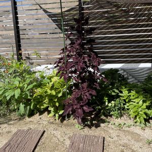 コリウス・ブラックドラゴン コリウスってこんなに成長するのねー知らなかった💦 1メートルは超えてます 隣の紫陽花より大っきい どこかで剪定いれないといけなかったのかな🤭🤭🤭 2枚目は昨日投稿のローゼルとの対比です ローゼルは180センチ位の高さです
