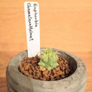 マグルさんからの素敵便🤩 カメレオンヘルメット‼️ ちょっとカッコいい陶器鉢に植えました🍀 チビッ子だけど男前だぜ‼️🤣 マグルさん、ありがとうございます♪ そして 名札まで送って下さって丁寧なお人柄が伝わります。 これからも仲良くしてね😆