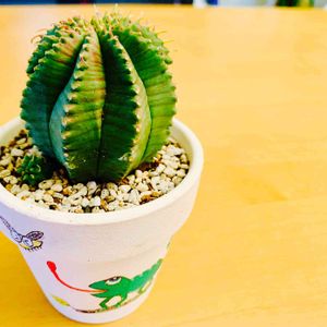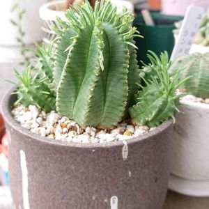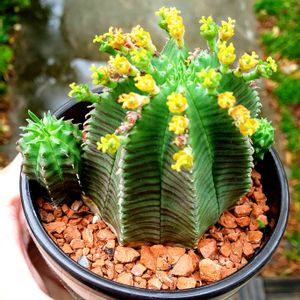 ユーフォルビアのカメレオンヘルメットさん 新芽がプックリと膨らんで超元気そう(≧∇≦)b 今夜から雨☔ 畑はカサカサで恵みの雨ですが、限度を超えない程度に降って欲しいものです(^^;)🌀☔